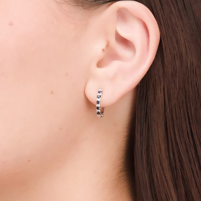 Серьги с 24 бриллиантами природными, 0.08 карат, огранка круг 17 граней, цвет 2, чистота 2, тип огранки А; 10 сапфирами природными, 0.39 карат, цвет 3, чистота 3, тип огранки В; Белое золото 585 пробы.