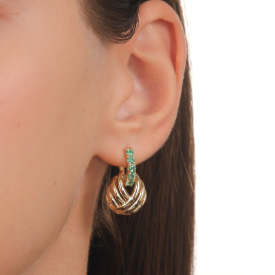 Золотые серьги с изумрудами природными