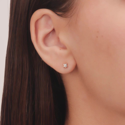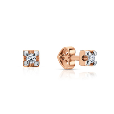 Серьги с 2 бриллиантами природными, 0.08 карат, огранка круг 57 граней, цвет 3, чистота 6, тип огранки А; Розовое золото 585 пробы.