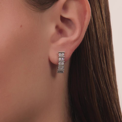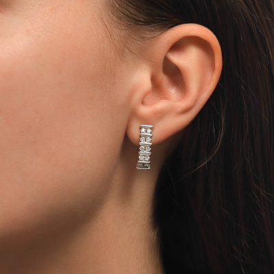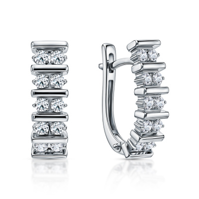 Серьги с 20 бриллиантами природными, 0.66 карат, огранка круг 57 граней, цвет 3, чистота 6, тип огранки А; Белое золото 585 пробы.