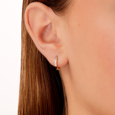 Серьги с 20 бриллиантами природными, 0.03 карат, огранка круг 17 граней, цвет 2, чистота 2; Желтое золото 585 пробы.