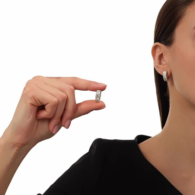Серьги с 24 бриллиантами природными, 1.9 карат, огранка круг 57 граней, цвет 3, чистота 6, тип огранки А; Белое золото 585 пробы.