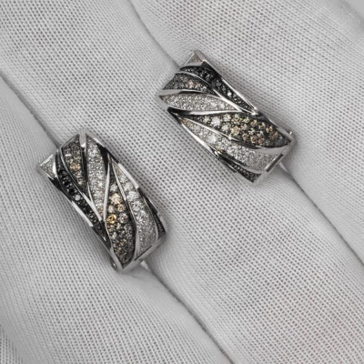 Серьги с 2 бриллиантами природными, 0.02 карат, огранка круг 57 граней, цвет 3, чистота 6, тип огранки А; 6 бриллиантами природными, 0.05 карат, огранка круг 57 граней, цвет 3, чистота 6, тип огранки А; 18 бриллиантами природными, 0.07 карат, огранка круг 17 граней, цвет 2, чистота 2, тип огранки А; 38 бриллиантами природными, 0.1 карат, огранка круг 17 граней, цвет 2, чистота 2, тип огранки А; 6 бриллиантами коньячными природными, 0.06 карат, огранка круг 57 граней, цвет 7, чистота 5, тип огранки А; 6 бриллиантами коньячными природными, 0.05 карат, огранка круг 57 граней, цвет 7, чистота 5, тип огранки А; 8 бриллиантами черными природными облагороженными, 0.03 карат, огранка круг 57 граней, цвет 7, чистота 6, тип огранки А; 30 бриллиантами коньячными природными, 0.1 карат, огранка круг 57 граней, цвет 7, чистота 5, тип огранки А; 10 бриллиантами черными природными облагороженными, 0.03 карат, огранка круг 57 граней, цвет 7, чистота 6, тип огранки А; 18 бриллиантами коньячными