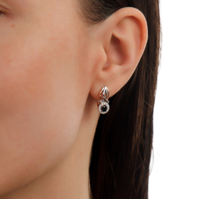 Серьги с 28 бриллиантами природными, 0.14 карат, огранка круг 17 граней, цвет 2, чистота 2, тип огранки А; 2 сапфирами природными, 0.38 карат, цвет 2, чистота 2, тип огранки В; Розовое золото 585 пробы.