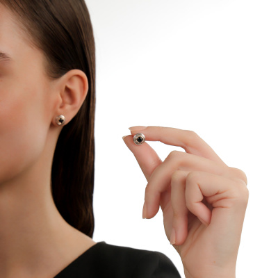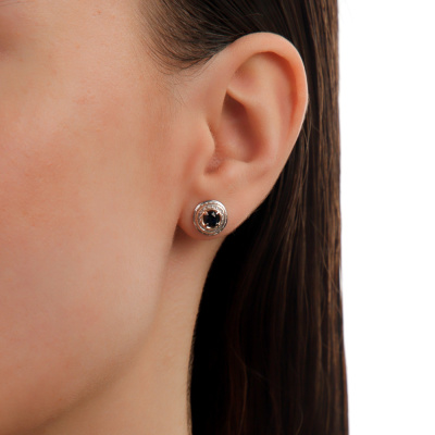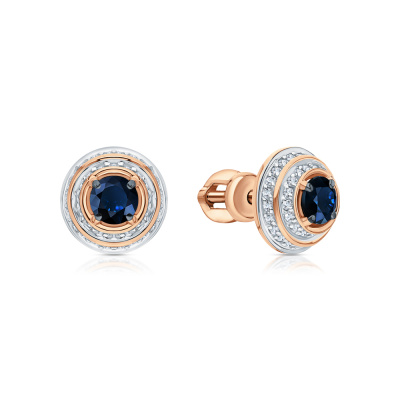 Серьги с 76 бриллиантами природными, 0.26 карат, огранка круг 17 граней, цвет 2, чистота 2, тип огранки А; 2 сапфирами природными, 0.57 карат, цвет 2, чистота 2, тип огранки В; Розовое золото 585 пробы.