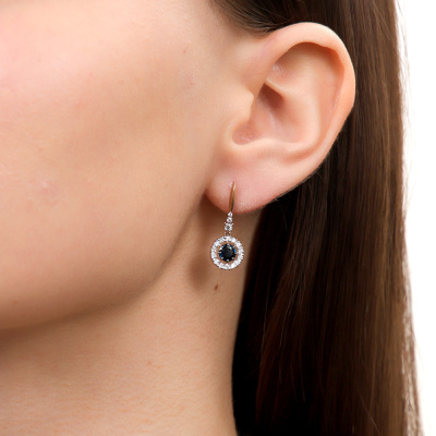 Золотые серьги с бриллиантами природными и сапфирами природными