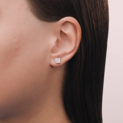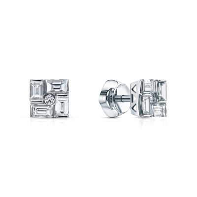Серьги с 8 бриллиантами природными, 0.64 карат, огранка багет 25 граней, цвет 3, чистота 3, тип огранки А; 2 бриллиантами природными, 0.02 карат, огранка круг 57 граней, цвет 3, чистота 6, тип огранки А; Белое золото 585 пробы.