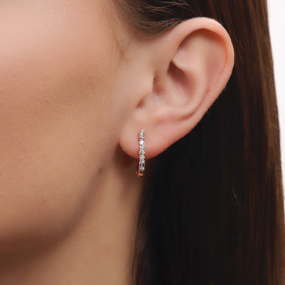 Серьги с 6 бриллиантами природными, 0.48 карат, огранка багет 25 граней, цвет 3, чистота 3, тип огранки А; 4 бриллиантами природными, 0.11 карат, огранка круг 57 граней, цвет 3, чистота 6, тип огранки А; Розовое золото 585 пробы.
