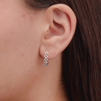 Серьги с 32 бриллиантами природными, 0.46 карат, огранка круг 57 граней, цвет 3, чистота 6, тип огранки А; Розовое золото 585 пробы.