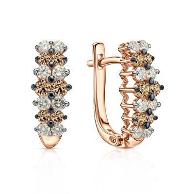 Серьги с 8 бриллиантами природными, 0.35 карат, огранка круг 57 граней, цвет 4, чистота 5, тип огранки А; 8 бриллиантами природными, 0.25 карат, огранка круг 57 граней, цвет 4, чистота 5, тип огранки А; 4 бриллиантами коньячными природными, 0.24 карат, огранка круг 57 граней, цвет 7, чистота 5, тип огранки А; 8 бриллиантами коньячными природными, 0.25 карат, огранка круг 57 граней, цвет 7, чистота 5, тип огранки А; Розовое золото 585 пробы.