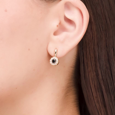 Серьги с 32 бриллиантами природными, 0.11 карат, огранка круг 17 граней, цвет 2, чистота 2, тип огранки А; 2 сапфирами природными, 0.54 карат, цвет 2, чистота 2, тип огранки В; Розовое золото 585 пробы.