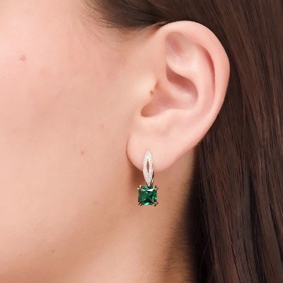 Золотые серьги с бриллиантами природными и изумрудами выращенными