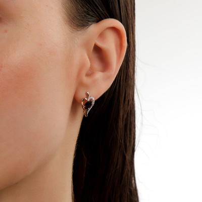 Золотые серьги с гранатами и бриллиантами