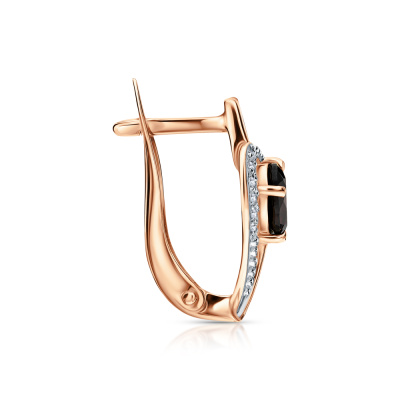 Серьги с 12 бриллиантами природными, 0.05 карат, огранка круг 17 граней, цвет 2, чистота 2; 2 гранатами природными, 1.11 карат; Розовое золото 585 пробы.