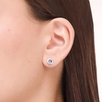 Серьги с 32 бриллиантами природными, 0.07 карат, огранка круг 17 граней, цвет 2, чистота 2, тип огранки А; 2 танзанитами природными, 0.49 карат, тип огранки В; Розовое золото 585 пробы.