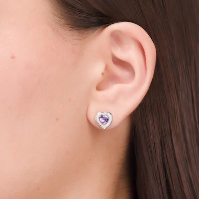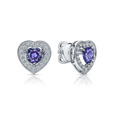 Серьги с 34 бриллиантами природными, 0.1 карат, огранка круг 17 граней, цвет 2, чистота 2, тип огранки А; 2 танзанитами природными, 0.87 карат, тип огранки Б; Белое золото 585 пробы.