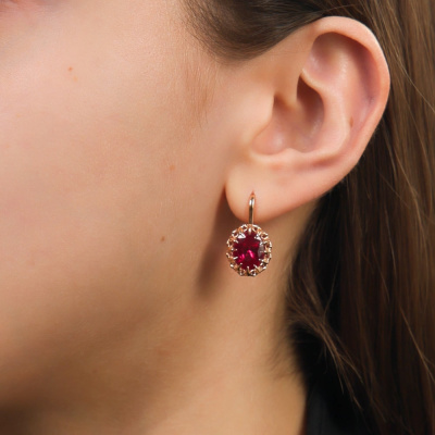 Серьги с 2 рубинами синтетическими, 5.55 карат; Розовое золото 585 пробы.