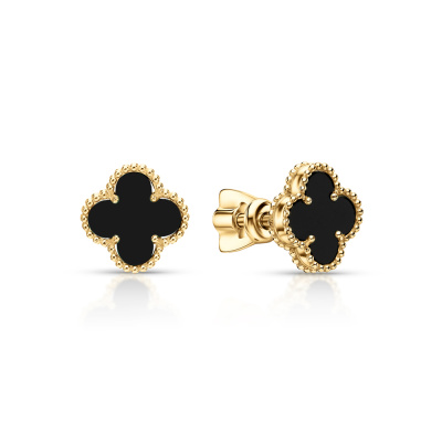 Серьги с 2 агатами черными природными; Желтое золото 585 пробы.