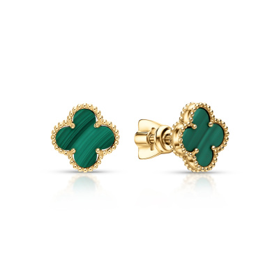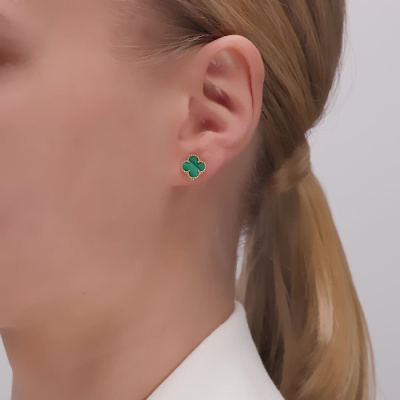 Серьги с 2 малахитами; Желтое золото 585 пробы.
