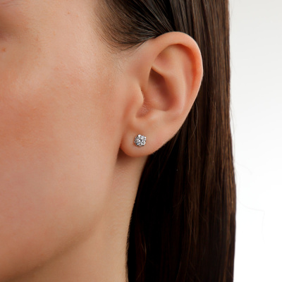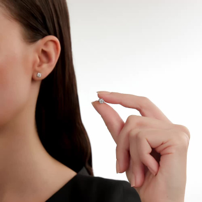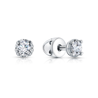 Серьги с 2 бриллиантами природными, 0.48 карат, огранка круг 57 граней, цвет 3, чистота 6, тип огранки А; Белое золото 585 пробы.