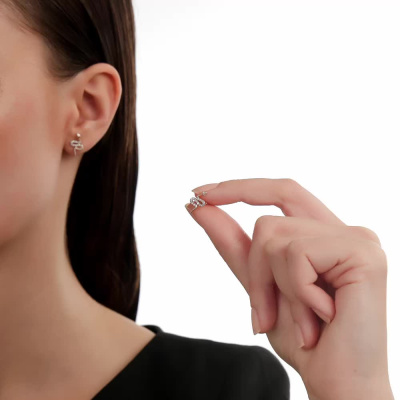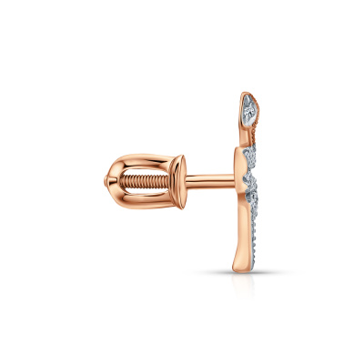 Серьги с 20 бриллиантами природными, 0.09 карат, огранка круг 17 граней, цвет 2, чистота 2, тип огранки А; 14 бриллиантами природными, 0.04 карат, огранка круг 17 граней, цвет 2, чистота 2, тип огранки Б; Розовое золото 585 пробы.