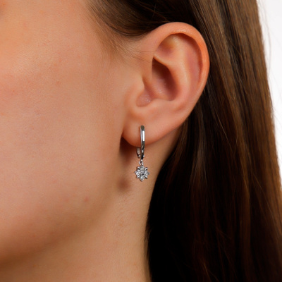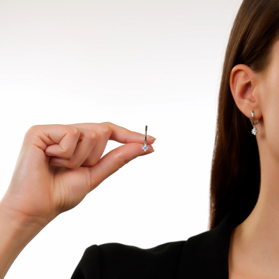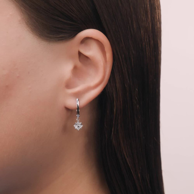 Серьги с 8 бриллиантами природными, 0.03 карат, огранка круг 57 граней, цвет 3, чистота 6, тип огранки А; Белое золото 585 пробы.