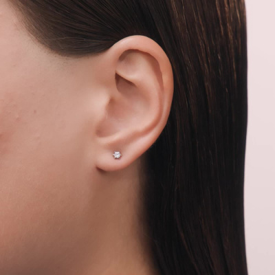 Серьги с 2 бриллиантами природными, 0.15 карат, огранка круг 57 граней, цвет 3, чистота 6, тип огранки А; Платина 950 пробы.