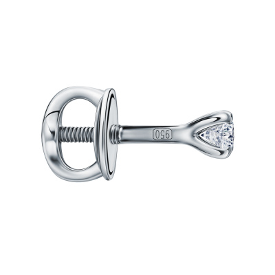 Серьги с 2 бриллиантами природными, 0.15 карат, огранка круг 57 граней, цвет 3, чистота 6, тип огранки А; Платина 950 пробы.