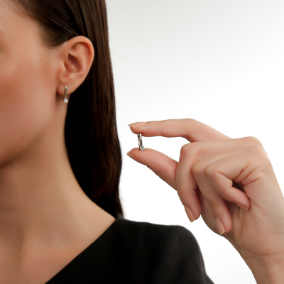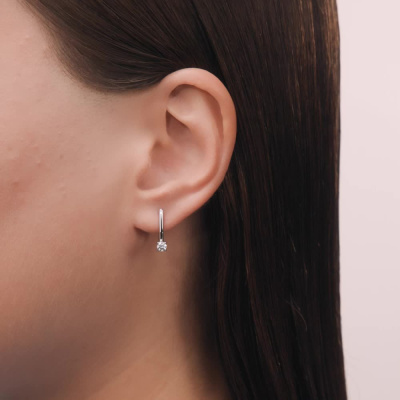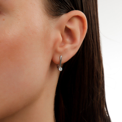 Серьги с 2 бриллиантами природными, 0.29 карат, огранка круг 57 граней, цвет 3, чистота 6, тип огранки А; Платина 950 пробы.