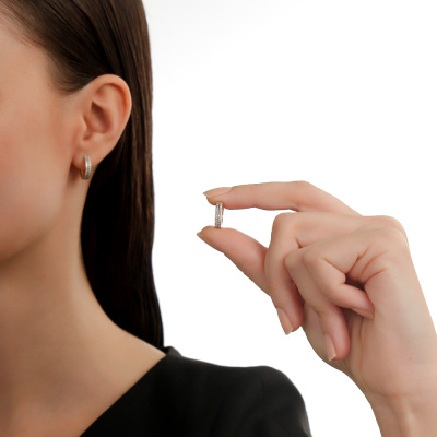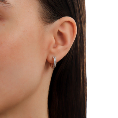Серьги с 64 бриллиантами природными, 0.25 карат, огранка круг 17 граней, цвет 2, чистота 2, тип огранки А; Розовое золото 585 пробы.
