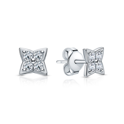 Серьги с 8 бриллиантами выращенными, 0.52 карат, огранка круг 57 граней; Серебро 925 пробы.