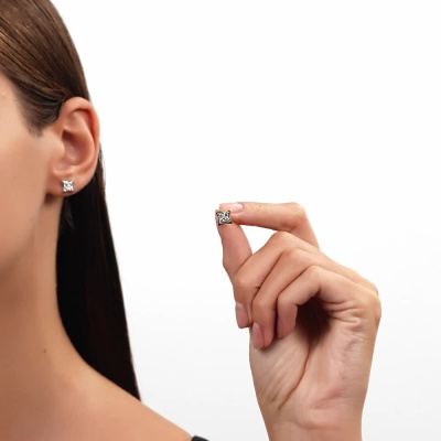 Серебряные серьги с бриллиантами выращенными