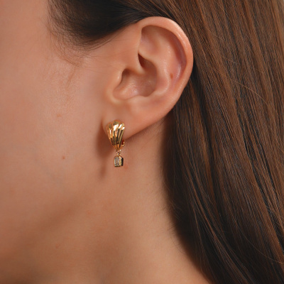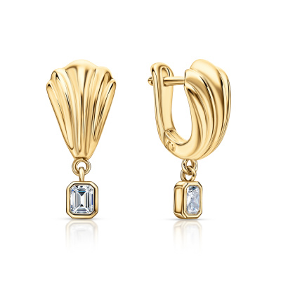 Серьги с 2 бриллиантами выращенными, 0.44 карат, цвет 3, чистота 5; Серебро 925 пробы.