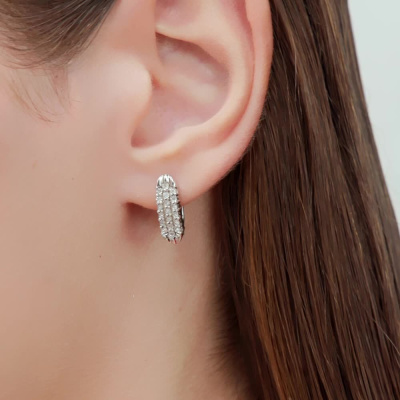 Серьги с 38 бриллиантами природными, 0.1 карат, огранка круг 17 граней, цвет 2, чистота 4; Серебро 925 пробы.