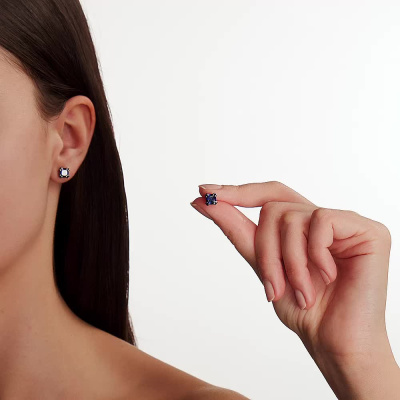 Серьги с 2 сапфирами выращенными, 2.78 карат; Белое золото 585 пробы.