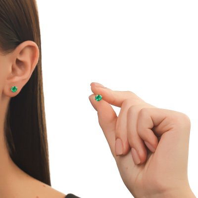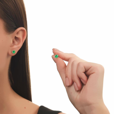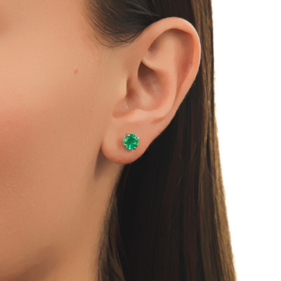Серьги с 2 изумрудами выращенными Колумбия, 1.44 карат; Желтое золото 585 пробы.