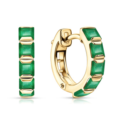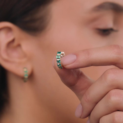 Серьги с 10 изумрудами выращенными Колумбия, 1.18 карат; Желтое золото 585 пробы.