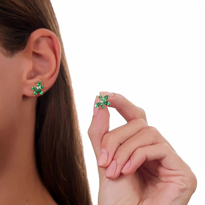 Золотые серьги с бриллиантами выращенными и изумрудами выращенными