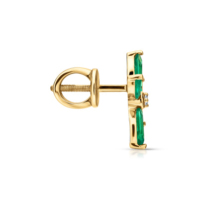 Серьги с 6 изумрудами выращенными Колумбия, 1.05 карат; 4 изумрудами выращенными Колумбия, 0.42 карат; 2 бриллиантами выращенными, 0.02 карат, огранка круг 57 граней, цвет 3, чистота 5, тип огранки А; Желтое золото 585 пробы.