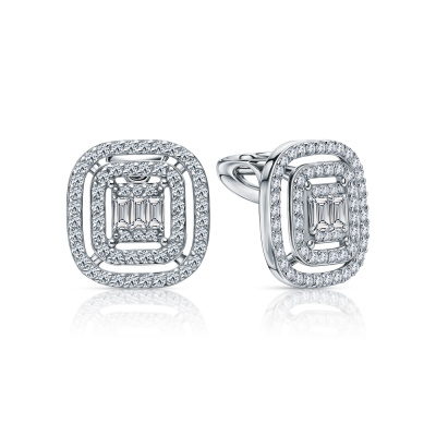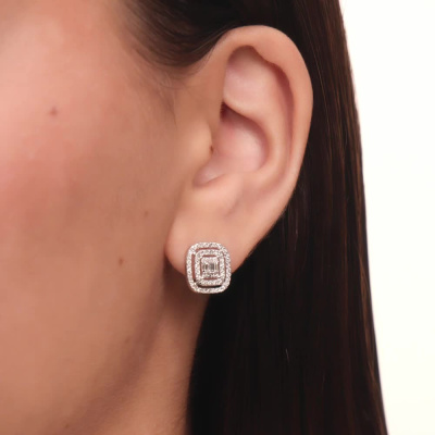 Серьги с 6 бриллиантами природными, 0.23 карат, огранка багет 25 граней, цвет 3, чистота 5, тип огранки А; 116 бриллиантами природными, 0.39 карат, огранка круг 17 граней, цвет 2, чистота 3, тип огранки А; Белое золото 585 пробы.