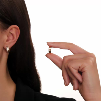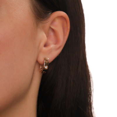 Серьги с 2 бриллиантами природными, 0.08 карат, огранка круг 57 граней, цвет 3, чистота 6, тип огранки А; Розовое золото 585 пробы.