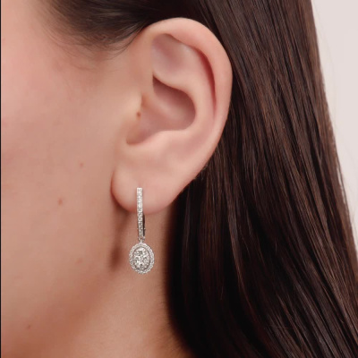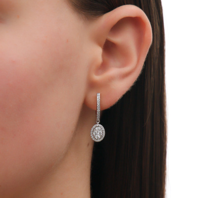 Серьги с 8 бриллиантами природными, 0.39 карат, огранка круг 57 граней, цвет 3, чистота 6, тип огранки А; 22 бриллиантами природными, 0.15 карат, огранка круг 57 граней, цвет 3, чистота 6, тип огранки А; 40 бриллиантами природными, 0.19 карат, огранка круг 57 граней, цвет 3, чистота 6, тип огранки А; 8 бриллиантами природными, 0.01 карат, огранка круг 57 граней, цвет 3, чистота 6, тип огранки А; Белое золото 585 пробы.