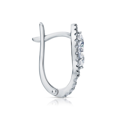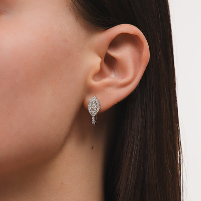 Серьги с 2 бриллиантами выращенными, 0.95 карат, огранка маркиз 55 граней, цвет 4, чистота 5, тип огранки А; 44 бриллиантами выращенными, 0.3 карат, огранка круг 57 граней, цвет 3, чистота 5, тип огранки А; Белое золото 585 пробы.
