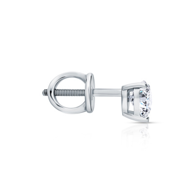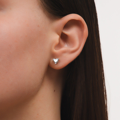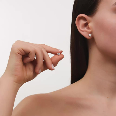 Серьги с 2 бриллиантами выращенными, 1.08 карат, огранка сердце 57 граней, цвет 4, чистота 5, тип огранки А; Белое золото 585 пробы.