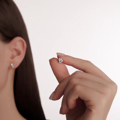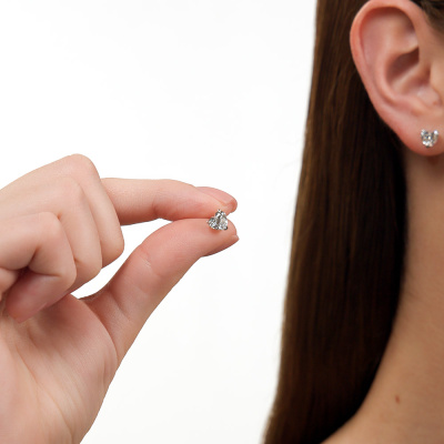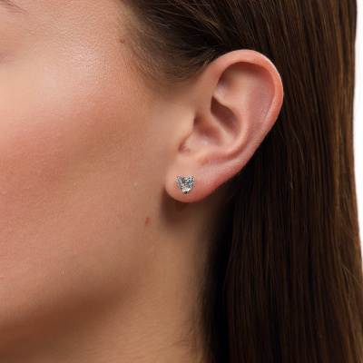 Серьги с 2 бриллиантами выращенными, 1.68 карат, огранка сердце 57 граней, цвет 4, чистота 5, тип огранки А; Белое золото 585 пробы.