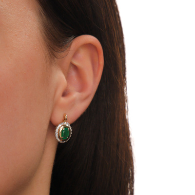 Золотые серьги с бриллиантами природными и изумрудами природными