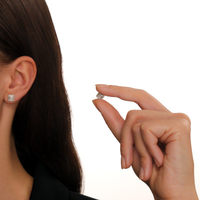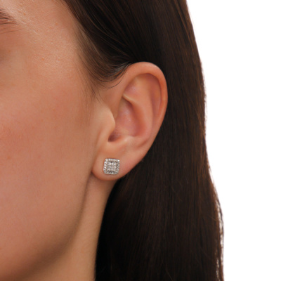 Серьги с 18 бриллиантами природными, 0.05 карат, огранка круг 17 граней, цвет 2, чистота 2, тип огранки А; 40 бриллиантами природными, 0.08 карат, огранка круг 17 граней, цвет 2, чистота 2, тип огранки А; Розовое золото 585 пробы.