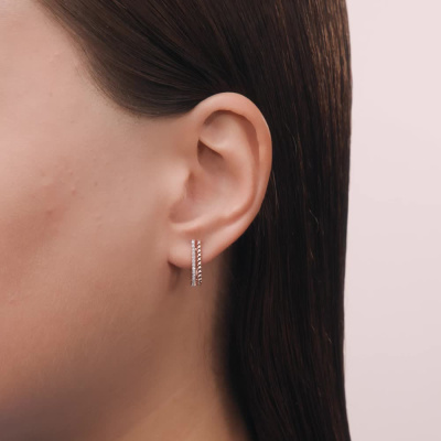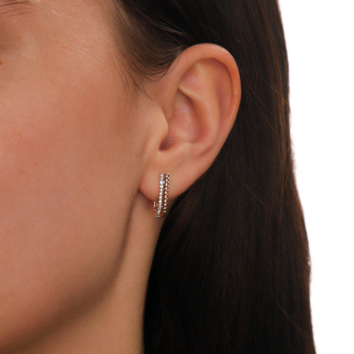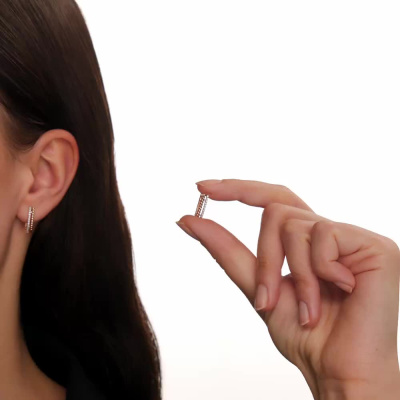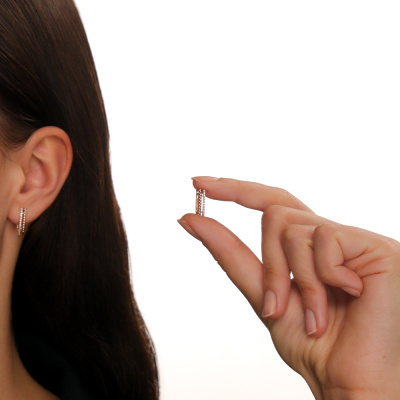 Серьги с 26 бриллиантами природными, 0.08 карат, огранка круг 17 граней, цвет 2, чистота 2, тип огранки А; Розовое золото 585 пробы.