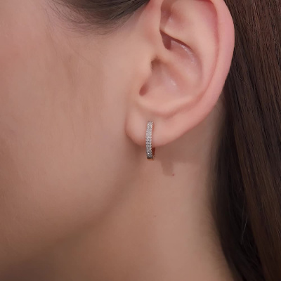 Серьги с 56 бриллиантами природными, 0.19 карат, огранка круг 17 граней, цвет 2, чистота 2, тип огранки А; Розовое золото 585 пробы.