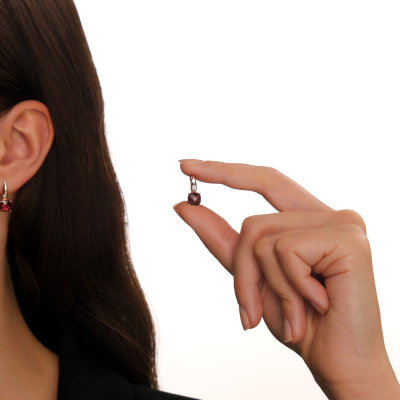 Серьги с 2 бриллиантами природными, 0.02 карат, огранка круг 17 граней, цвет 2, чистота 2, тип огранки А; 2 гранатами природными, 3.77 карат, тип огранки Б; Розовое золото 585 пробы.